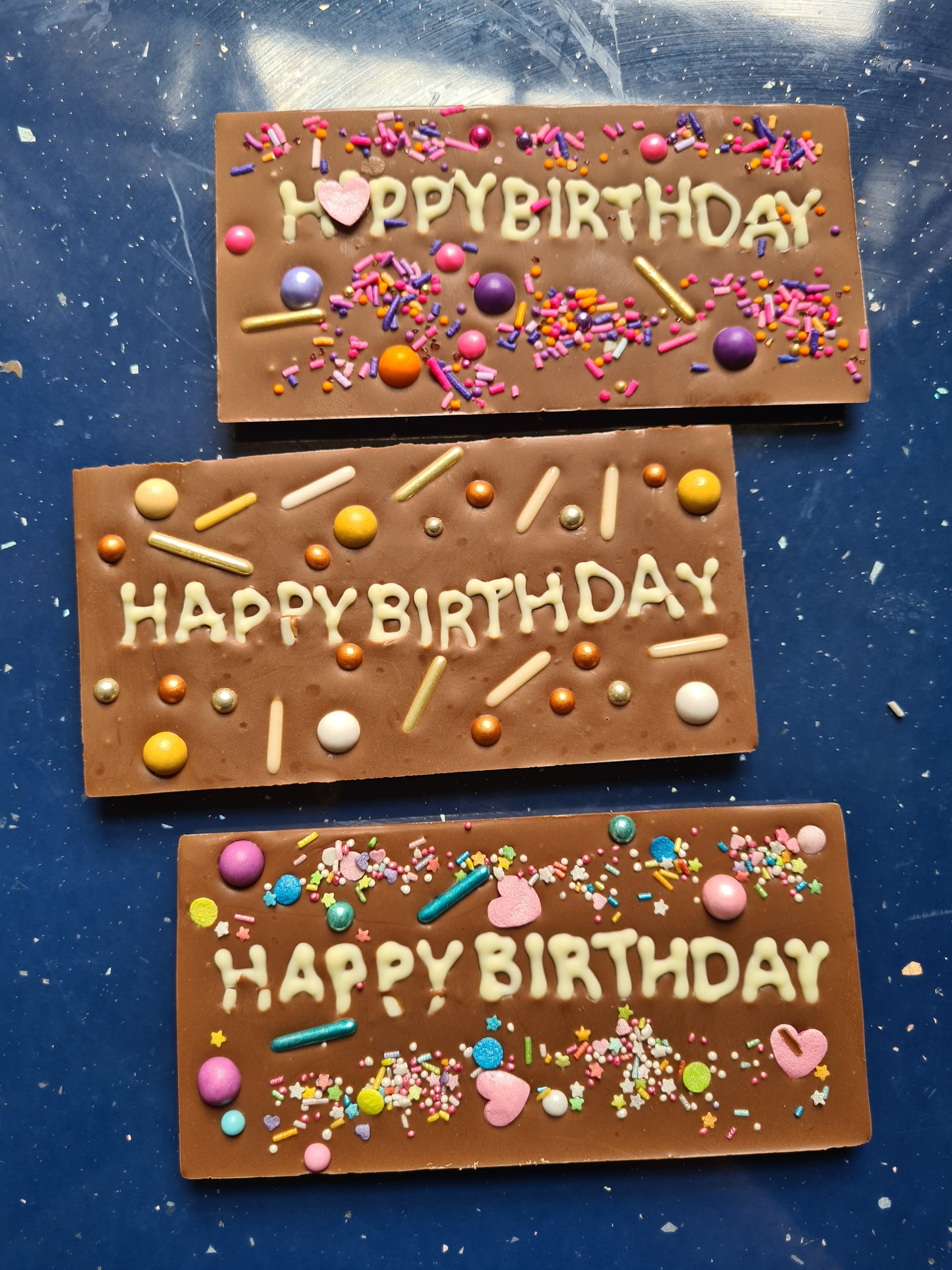 Say 'HAPPY BIRTHDAY' with an explosion of colour and deliciousness in our beautiful Belgian chocolate bars!